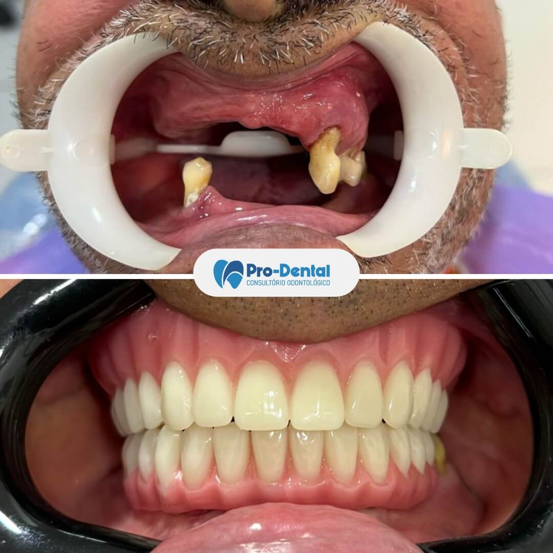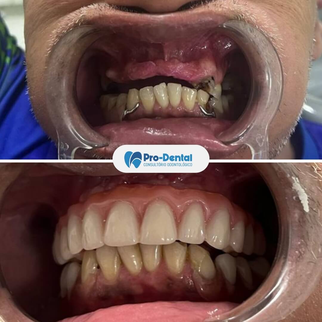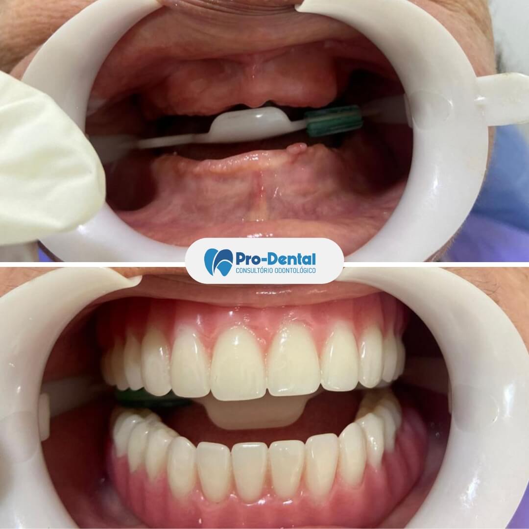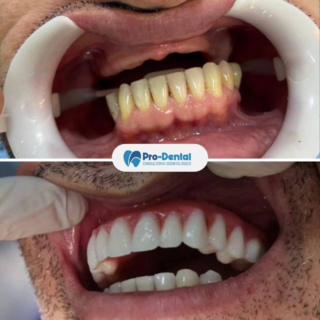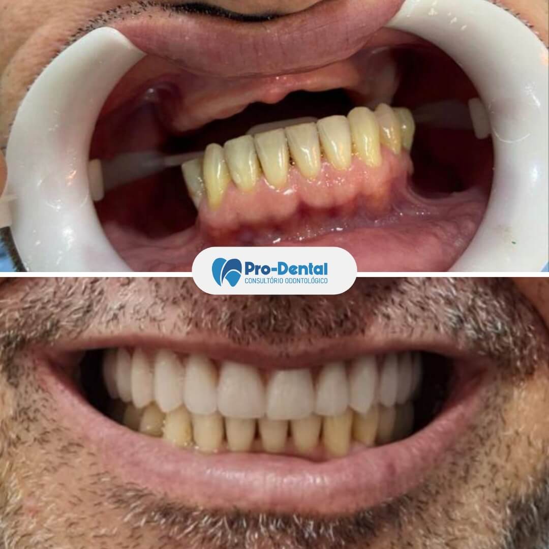 O tempo total varia de acordo com cada caso. Em geral, desde a cirurgia até a colocação da prótese definitiva pode levar de 3 a 6 meses. Em alguns casos, é possível fazer a chamada “carga imediata”, com a instalação da prótese provisória no mesmo dia da cirurgia.